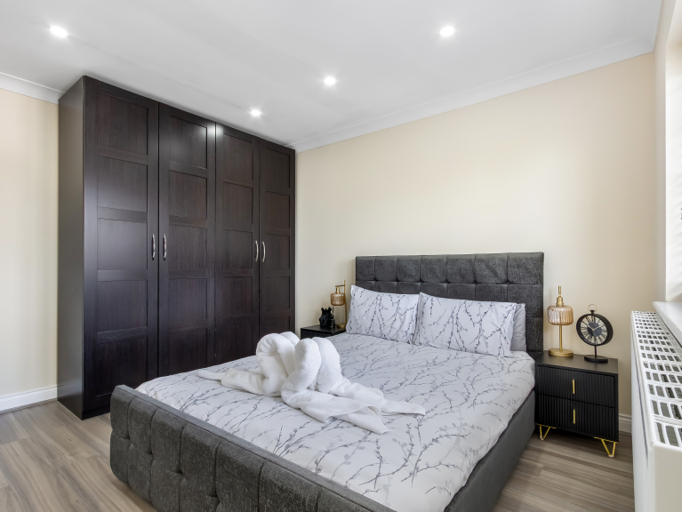 Brand new stylish and spacious one bedroom first-floor apartment in the prestigious Totteridge & Whetstone area of North London. Conveniently located with excellent access to nearby tube stations and local amenities. The apartment comfortably sleeps up to four guests, with a luxurious king size bed in the bedroom and a high quality, spacious double sofa bed in the living area. Perfect for couples, families or business travellers.