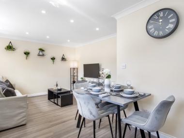 This stylish one bedroom apartment is designed for both short term and long term stays. It features a spacious open plan kitchen and dining area, fully equipped with all cooking essentials. A modern washing machine, ironing board and iron are provided for added convenience. The living space is bright and…